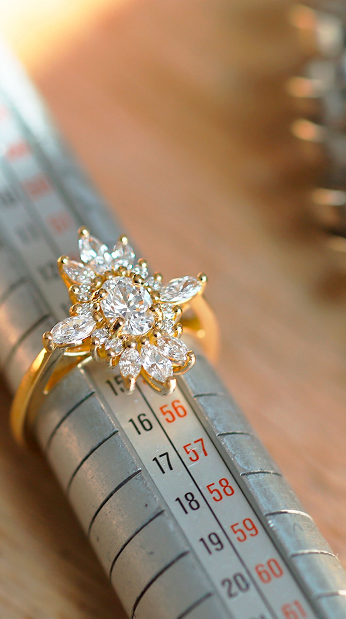 • Si c’est pour un cadeau ou une surprise, nos experts peuvent estimer la taille à partir de photos ou d’une bague déjà portée.