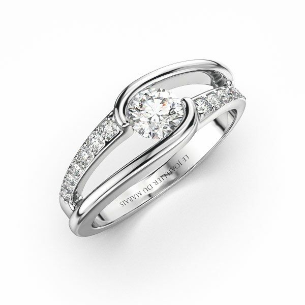 Ankara est réalisable en or blanc, jaune, rose 750‰ ou en platine 950‰. La pierre de centre est personnalisable (diamant, saphir, rubis, tourmaline rose...) selon vos envies. Son originalité et sa modernité réside dans la monture quatre branches venant légèrement enrouler la pierre centrale, alliant métal et accompagnement de 14 diamants.Recevoir votre baguier