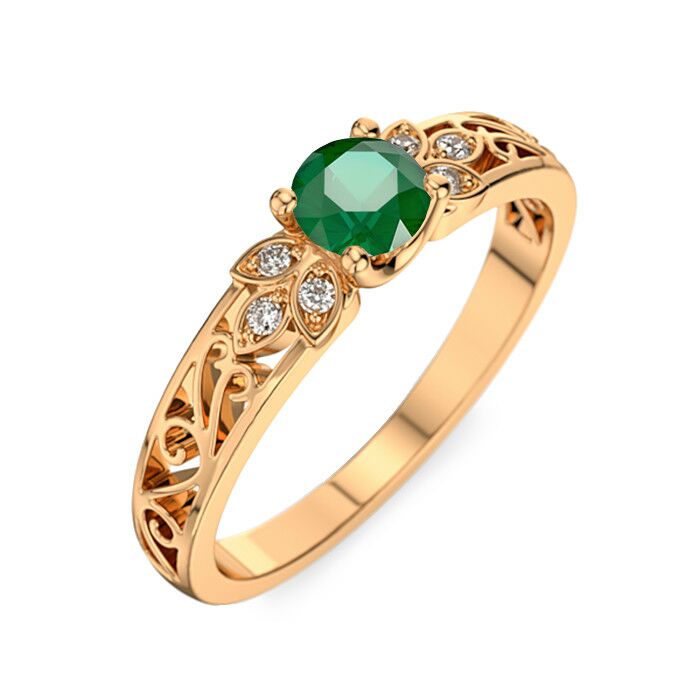 Bague ARABESQUE en or rose 750‰ avec émeraude