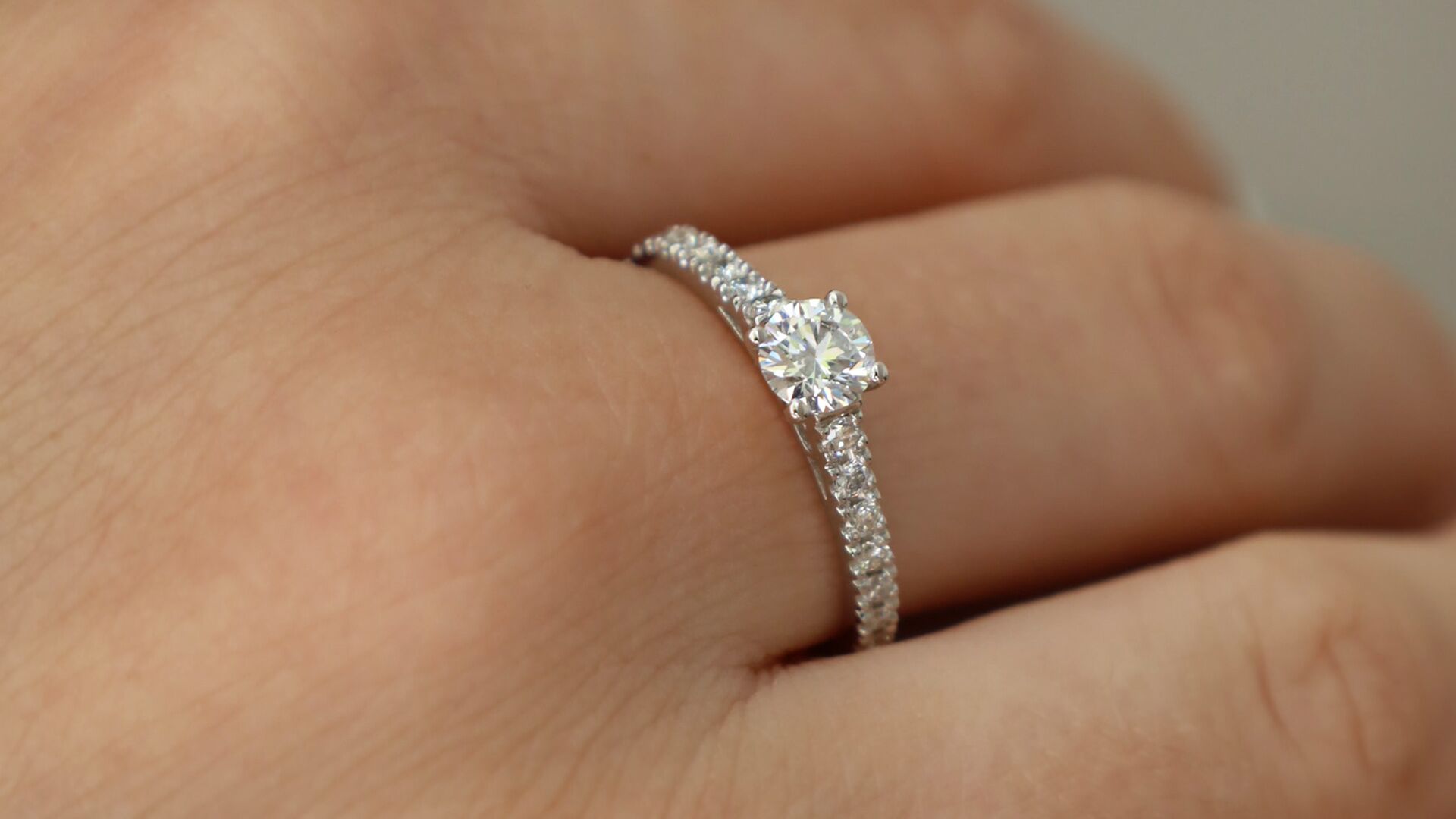 Faites une déclaration d’amour éclatante avec un solitaire accompagné. Sertie de diamants le long de l’anneau, cette bague de fiançailles met en valeur la pierre centrale tout en amplifiant sa brillance. Découvrez notre collection, personnalisez le métal précieux — or 18 carats (750 millièmes) ou platine 950 millièmes — et créez la bague qui fera briller ses yeux et son cœur.