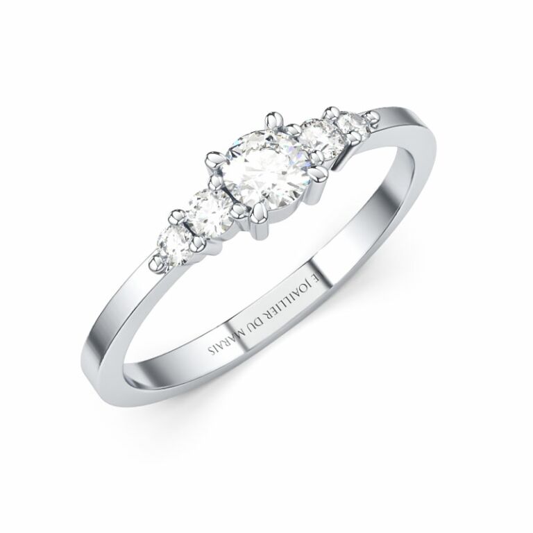 Alphée met en valeur 5 gemmes à travers un solitaire délicatement épaulé intemporel. Chargé de sens, elle symbolise notamment la solidité et la durabilité d’un couple dans le cadre de fiançailles. La bague Alphée est à personnaliser selon vos envies. Une pierre centrale que vous pouvez modifier en prenant rendez-vous avec l’un de nos conseillers aussi bien au niveau de la couleur, que de la forme.