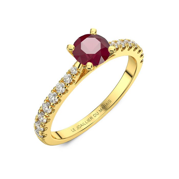 Solitaire accompagné dans un style traditionnel joaillerie, Dolly est sertie de 8 diamants en serti descendu poursuivant comme une ligne de lumière. En son centre une pierre au choix (diamant, saphir, émeraude, rubis...) montée en chaton 4 griffes. Il est également possible de la personnaliser au niveau du métal, en or blanc, jaune, rose 750‰ ou platine 950‰.