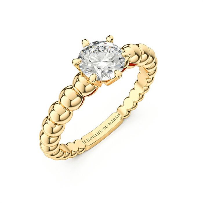 Ariel est une bague aux lignes épurées, composée d’un joli corps perlé poli illuminant une pierre centrale ronde personnalisable en termes de poids 0.35 ou 0.50 carat et de types de pierres (saphir, émeraude, rubis, diamant...). Le métal est également déclinable en or blanc, jaune ou rose 750‰ ainsi qu’en platine 950‰.
