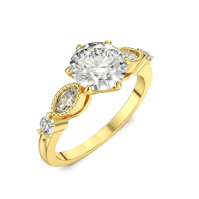 Solitaire accompagné glamour de proportion mythique, Marilyn s’offre une monture baroque alliant les tailles brillants et marquises. La pierre de centre en serti 6 griffes est personnalisable selon vos envies (diamant, saphir, rubis, émeraude...). Il est aussi possible de choisir le métal que l'on souhaite parmi l'or blanc, rose ou jaune 750‰ et le platine 950‰.