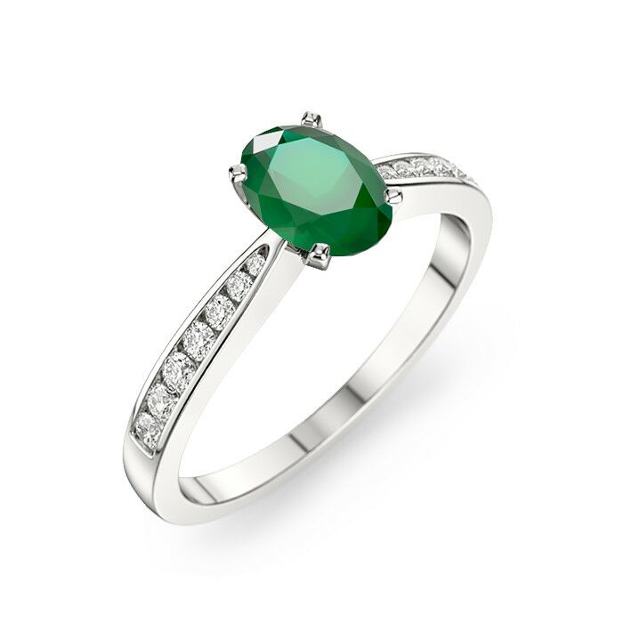 Erika est une déclinaison du modèle emblématique Anaïs, mais habillée d'un chaton droit et non croisé. Elle est sertie d’une pierre précieuse centrale au choix (diamant, émeraude, rubis, saphir...) et accompagnée de 14 diamants sur les côtés. Sa pierre centrale est sublimée par la monture (en or blanc, jaune, rose 750‰ ou platine 950‰) qui s'affine légèrement.