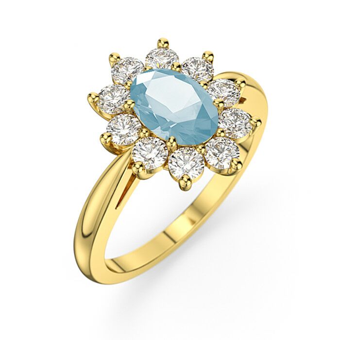 Bague EDELWEISS en or jaune 750‰ avec aigue marine
