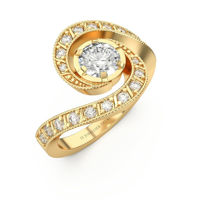 La bague NAÏA est une création inspirée des flots océaniques façonné par des courbes délicates, subtilement hypnotisantes. Au centre de ce tourbillon de 20 diamants se trouve une pierre centrale au choix (rubis, saphir, émeraude, diamant et bien d'autres sur demande), mise en valeur par un serti 6 griffes. Elle est personnalisable en or blanc, jaune ou rose 750‰ ou qu’en platine 950‰.