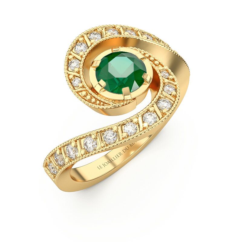 La bague NAÏA est une création inspirée des flots océaniques façonné par des courbes délicates, subtilement hypnotisantes. Au centre de ce tourbillon de 20 diamants se trouve une pierre centrale au choix (rubis, saphir, émeraude, diamant et bien d'autres sur demande), mise en valeur par un serti 6 griffes. Elle est personnalisable en or blanc, jaune ou rose 750‰ ou qu’en platine 950‰.