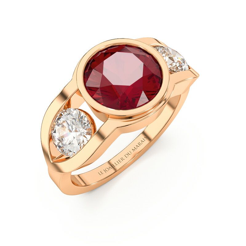 KRYSTA est une bague trilogie personnalisable en or blanc, jaune, rose 750‰ ou en platine 950‰. Vous pouvez également choisir votre pierre de centre, que ce soit un diamant, un saphir, une émeraude ou encore un rubis qui est accompagnée de deux diamants. Son serti demi clos apporte du charme et de la modernité à ce modèle et saura parfaitement mettre votre main en avant. Le métal poursuit son chemin épousant le côté des pierres d'accompagnement, ce qui apporte une structure moderne et unique. Pour plus de personnalisation (métal, type de pierre, poids en carat) n'hésitez pas à nous contacter.KRYSTA est une bague trilogie personnalisable en or blanc, jaune, rose 750‰ ou en platine 950‰. Vous pouvez également choisir votre pierre de centre, que ce soit un diamant, un saphir, une émeraude ou encore un rubis qui est accompagnée de deux diamants. Son serti demi clos apporte du charme et de la modernité à ce modèle et saura parfaitement mettre votre main en avant. Le métal poursuit son chemin épousant le côté des pierres d'accompagnement, ce qui apporte une structure moderne et unique. Pour plus de personnalisation (métal, type de pierre, poids en carat) n'hésitez pas à nous contacter.Matière : Or jauneTitrage : 750‰ (18 carats)Poids métal : 6 à 7 grammesType de pierre : RubisPoids en carats centre : 1.50 caratForme pierre centrale : Taille brillantNombre de pierres d'accompagnement : 2Poids total d'accompagnement : 0.80 carat- Livraison
