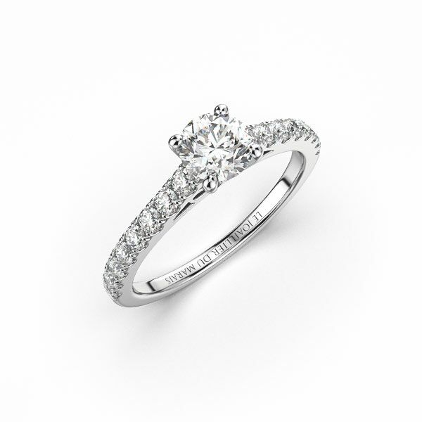 Aukland est une bague de fiançailles intemporelle, personnalisable en or blanc, jaune, rose 750‰ ou en platine 950‰. Elle est sertie d'une pierre centrale taille brillant au choix (diamant, saphir, émeraude, rubis...) et accompagnée de 16 diamants. Délicate et raffinée, elle séduit par la mise en valeur des pierres.