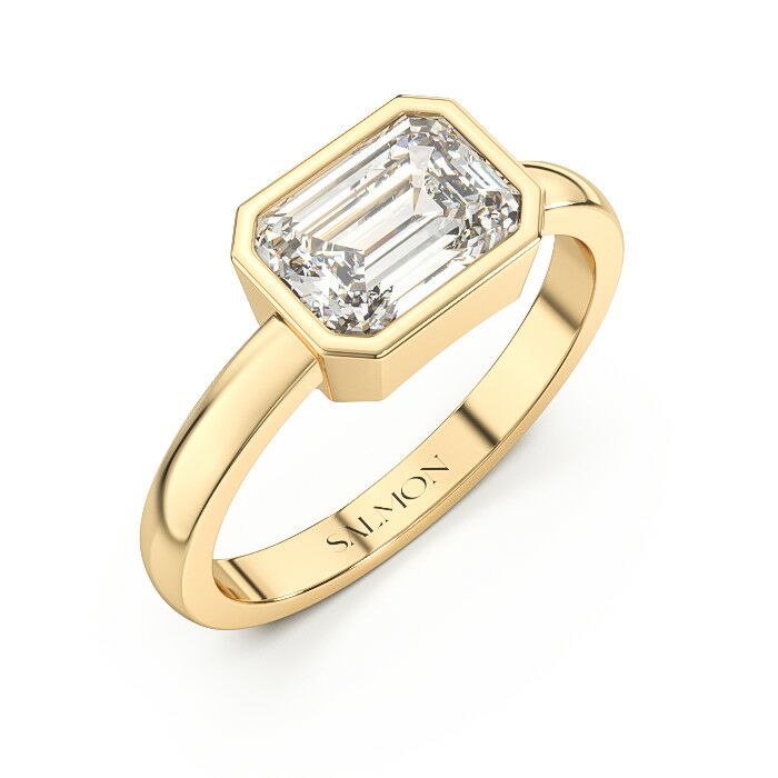 La bague Emmanuelle est un solitaire au style moderne et géométrique. Cette création se compose d’une pierre centrale rectangulaire en serti clos et personnalisable selon votre préférence (diamant, rubis, saphir, émeraude..). Elle se décline en or blanc, rose ou jaune 750‰ ainsi qu’en platine 950‰. Pour plus de personnalisation, contactez-nous.Recevoir votre baguier