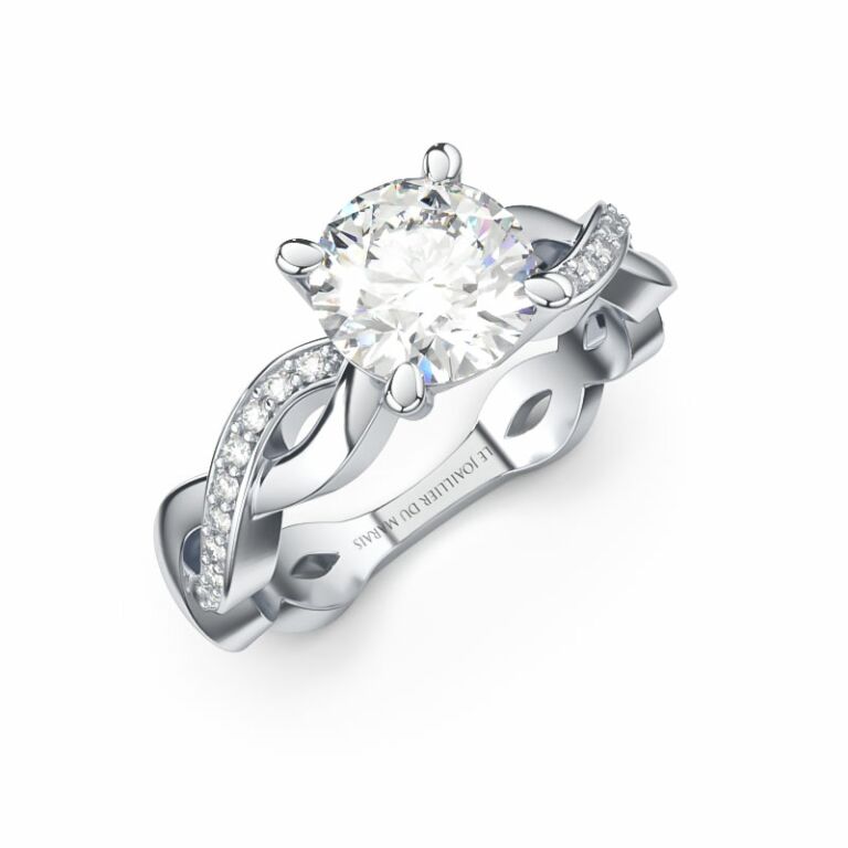 Bettina est une ravissante bague entrelacée, à la fois moderne et élégante. La monture est ornée de 40 diamants qui mettent en valeur une pierre centrale personnalisable en termes de poids et de type (saphir, émeraude, rubis, diamant, saphir teal ou tourmaline rose…). Personnalisez également le métal de votre choix : or blanc, jaune, rose 750‰ ou platine 950‰. Pour plus de personnalisation, contactez-nous !Recevoir votre baguier