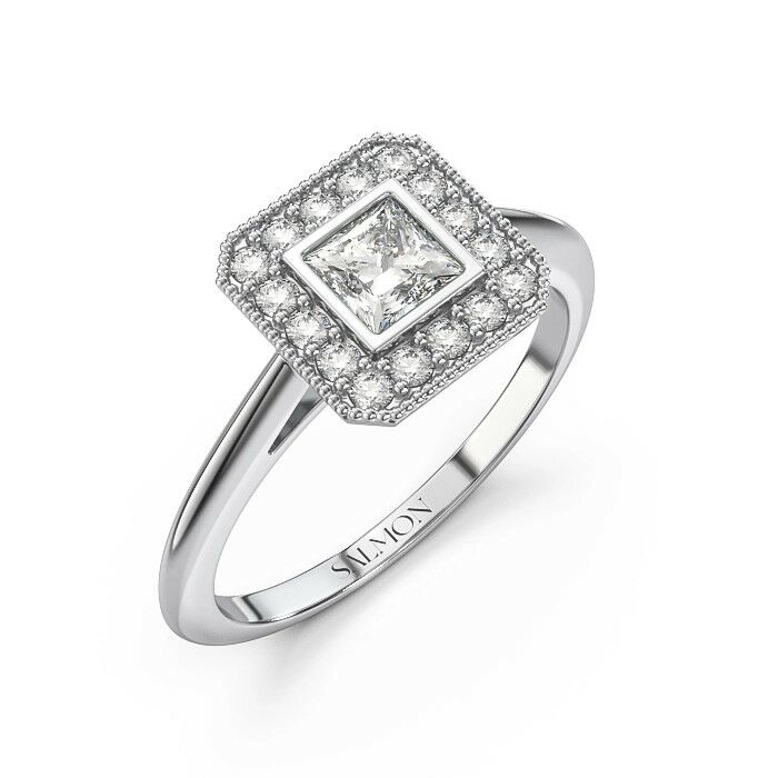 Élégante et vintage, Nell est une bague à entourage carré à pans coupés, sertie d’une pierre centrale taille princesse en serti clos. Ce halo en serti clos accentue l’éclat de la pierre principale tout en apportant une touche de raffinement, à la fois moderne et intemporelle. Cette création est entièrement personnalisable, du choix de la pierre centrale (diamant, saphir, rubis, émeraude) au type de métal (or blanc, jaune, rose 750‰ ou platine 950‰). Pour encore plus de personnalisation, contactez-nous !Recevoir votre baguier