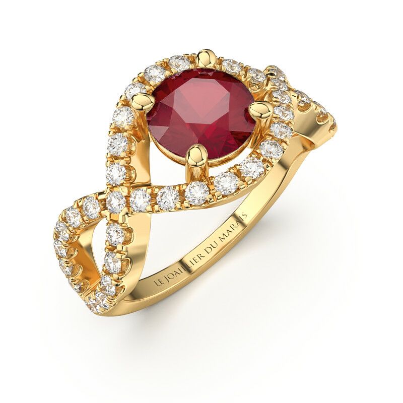 Bague VICTOIRE en or jaune 750‰ avec rubis