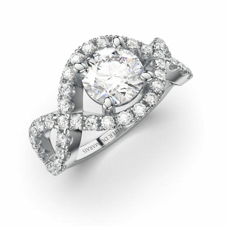 La bague Victoire est une création spectaculaire qui incarne l’amour infini et l’élégance. En son centre, un magnifique pierre taille brillant est sublimé par un halo de diamants, tandis que son anneau entrelacé, entièrement pavé de diamants, ajoute une touche de raffinement et de glamour. Disponible en or blanc, jaune, rose 750‰ ou en platine 950‰, cette bague peut être personnalisée selon vos souhaits, notamment en choisissant la pierre centrale qui correspond à votre histoire. Pour un bijou unique et symbolique, n'hésitez pas à nous contacter !Recevoir votre baguier