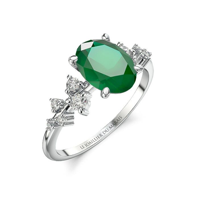 La bague Irisa est une déclinaison élégante de notre modèle iconique Rosa. Sa pierre centrale taille ovale est sublimée par un sertissage aérien, accompagné d’un pavage asymétrique de diamants qui apporte modernité et éclat. Disponible en or blanc, jaune, rose 750‰ ou en platine 950‰, elle peut être personnalisée selon vos envies. Pour une création unique, n’hésitez pas à nous contacter.