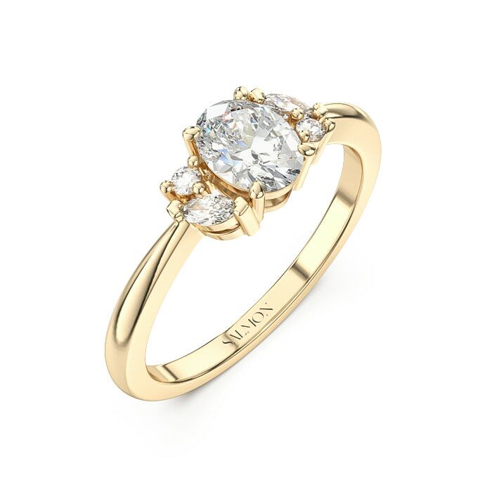 Améa séduit par son design épuré et contemporain. Son anneau légèrement effilé met en valeur une pierre centrale, sublimée de part et d’autre par un diamant taille brillant et un diamant taille marquise. Disponible en or blanc, jaune, rose 750‰ ou en platine 950‰, elle peut être personnalisée selon vos envies. Pour une création unique, n’hésitez pas à nous contacter.