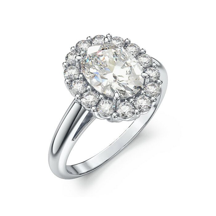 Isadora est une bague marguerite exquise qui allie audace de part ses volumes généreux et élégance. Elle est réalisable en or blanc, jaune ou rose 750‰ ainsi qu'en platine 950‰. Sa pierre centrale ovale est personnalisable, en diamant, rubis, saphir ou encore émeraude.