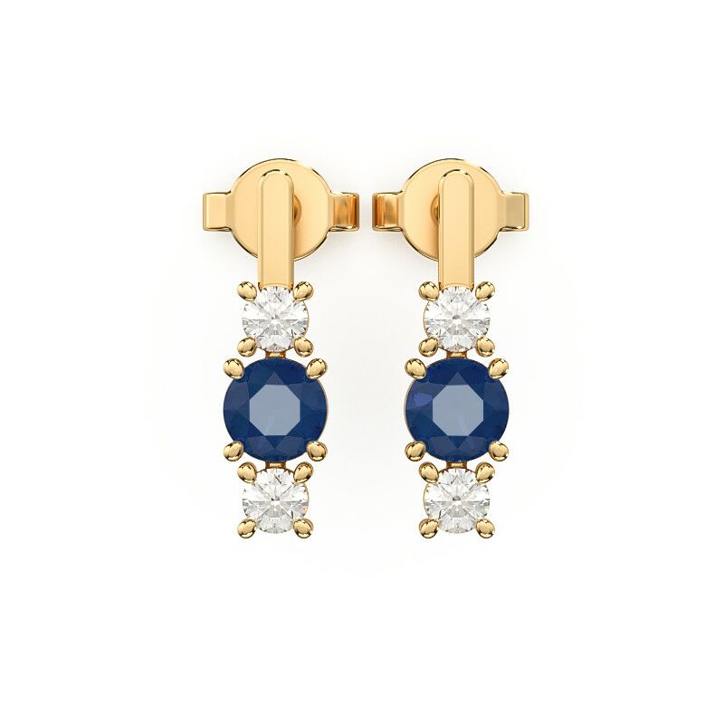 Cette paire de boucles d'oreilles met en valeur 3 gemmes à travers une trilogie intemporelle. Chargée de sens, elle symbolise notamment la solidité et la durabilité d’un amour. Adriana est entièrement personnalisable, de part ses deux pierres centrales (diamant, saphir, émeraude, rubis...) et le choix du métal, en blanc, jaune ou rose.