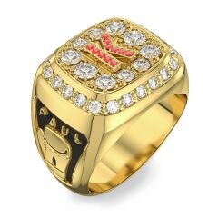 KICK est une chevalière personnalisable en or blanc, jaune, rose 750‰ ou en platine 950‰, serti de diamants totalisant environ 1.70 carats et de rubis pour un poids total d'environ 0.05 carat. Pour plus de personnalisation (la lettre centrale, dessins sur les côtés…), n'hésitez pas à nous contacter.Recevoir votre baguier