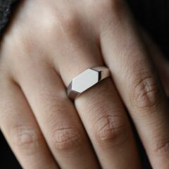 Chevalière sculpturale, d’architecture Art Déco, Valère propose un plateau hexagonal. Originale, elle est polie sur les côtés et brossée sur sa surface plate, pour affirmer la forme. Elle est déclinable en or blanc, jaune, rose 750‰, en platine 950‰ ainsi qu'en argent 925‰. Pour plus de personnalisation (gravure plateau, ajout pierre...), n’hésitez pas à nous contacter.Recevoir votre baguier