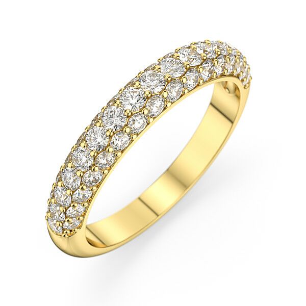 MILA est une bague personnalisable en or blanc, rose ou jaune 18 carats (750/1000) ou en platine 950. Elle est sertie en demi tour de l'anneau d'un magnifique pavage de 3 rangs de diamants taille brillant.Recevoir votre baguier