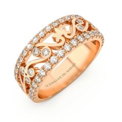 La bague Aleandra dont les arabesques jouent avec la lumière, est une bague bandeau sertie de 52 diamants. Elle est déclinable en or blanc, jaune, ou rose 18 carats 750‰ ainsi qu’en platine 950‰. Son design aux inspirations vintage lui apporte toute sa singularité. Pour plus de personnalisation, n’hésitez pas à nous contacter !Recevoir votre baguier