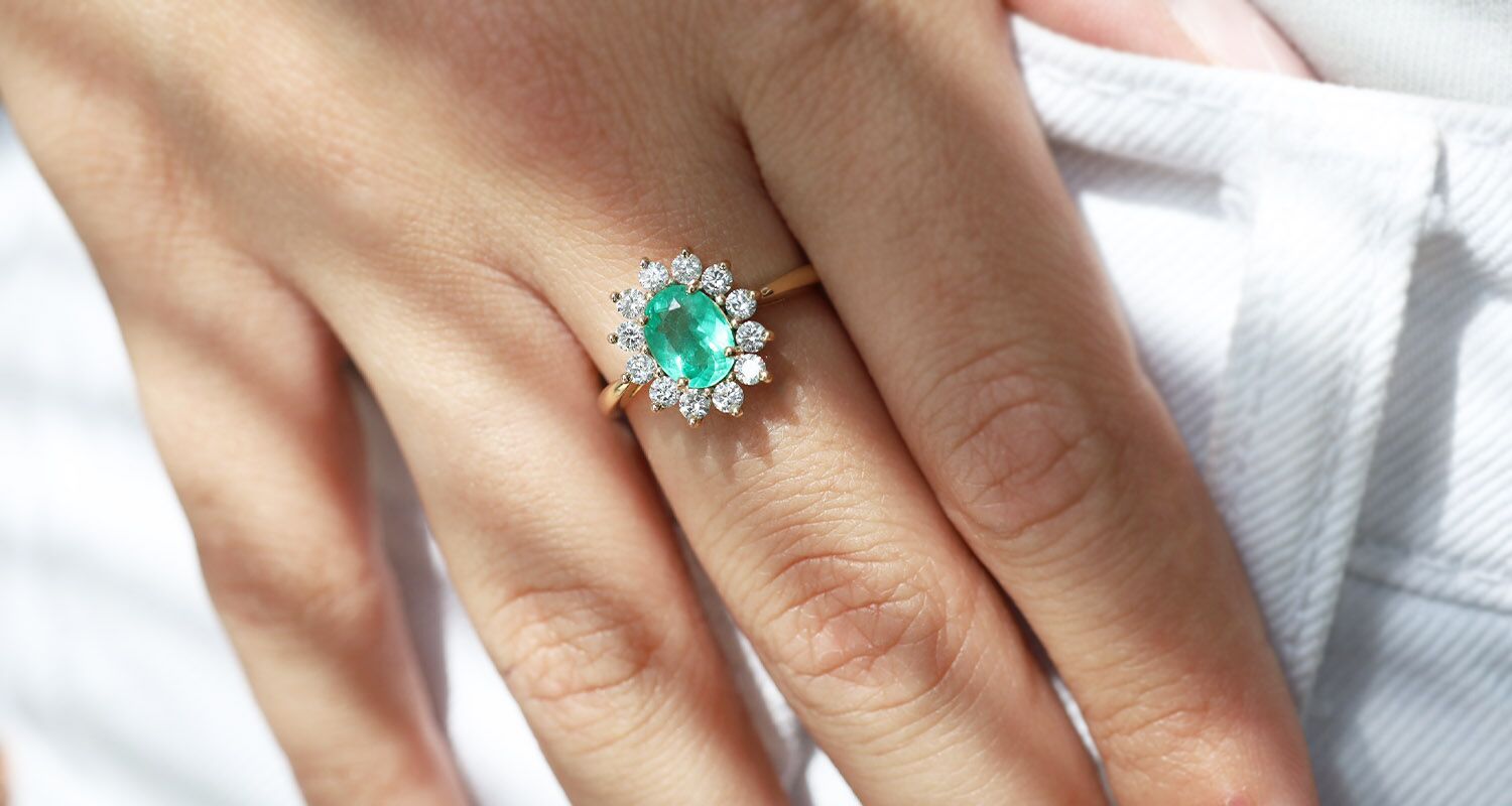 L’émeraude appartient à la famille des béryls, on la reconnaît par sa couleur ainsi que par ses inclusions qui lui sont propres : « jardins de l'émeraude ». Ces derniers s'installent durant la croissance naturelle de la pierre; il n’existe pas d’émeraude dite “pure”. Il s’agit de l’une des gemmes qui présente le plus grand nombre et variété d’inclusions; d’autant que les lapidaires comblent ces inclusions avec un procédé qu'on appelle le huilage. L’émeraude doit sa couleur verte si caractéristique au mélange du chrome et du vanadium. La dureté des émeraudes varie de 7.5 à 8/10 sur l’échelle de Mohs. Cela signifie qu’elles sont sertissables et qu’elles peuvent être portées au quotidien en prenant garde à ne pas l’exposer à des chocs thermiques, car l’émeraude est plus sensible que le saphir ou le rubis. L’émeraude est également sujette aux phénomènes de chatoyance et d’astérisme qui peuvent être révélés par la taille en cabochon. L’émeraude s’exprime en carat au niveau de son unité de poids.