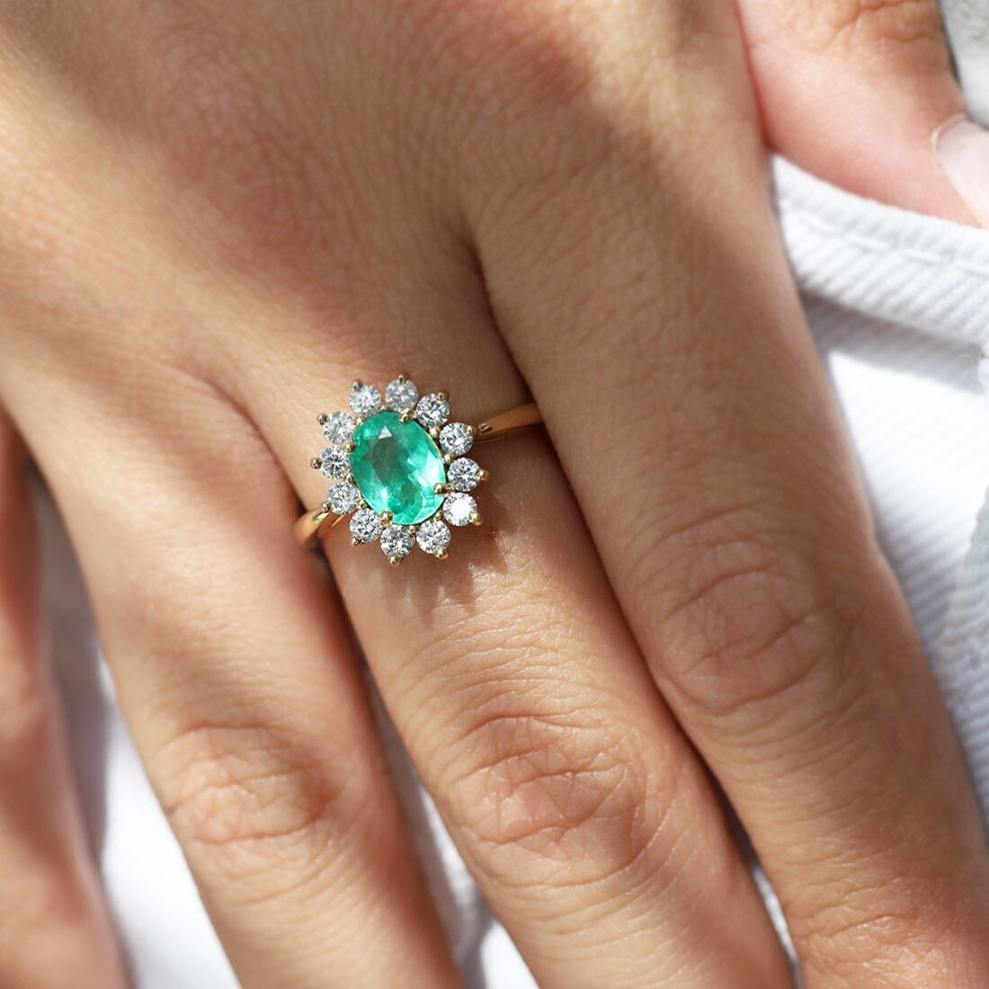 L'émeraude doit son nom au grec ancien “smaragdos” issu d’un mot qui signifie “briller” . Prisée depuis l'Antiquité, cette pierre était particulièrement appréciée par la reine Cléopâtre durant l’Égypte ancienne. L’émeraude figure dans la famille des béryls, (du grec “beryllos”) aux côtés de l’aigue-marine, de la morganite, de l’héliodore, de de la bixbite et de la goshénite. C’est une pierre précieuse très couramment utilisée en joaillerie tout comme le diamant, le rubis et le saphir.