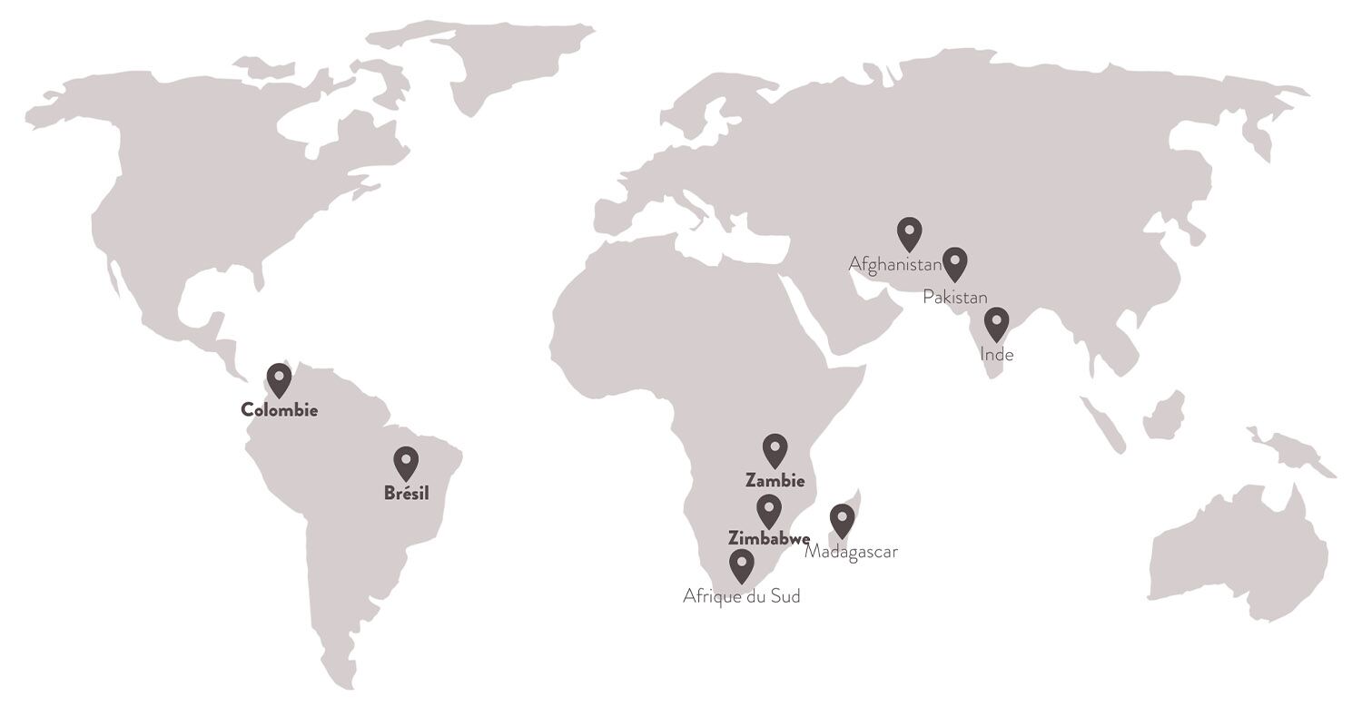 Les gisements d’émeraude les plus importants se situent principalement en Colombie, au Brésil, au Zimbabwe, en Zambie, en Afrique du Sud, en Afghanistan, en Inde, au Madagascar, en Mozambique, au Pakistan... C’est une pierre qui reste commune et abondante, sa rareté et par conséquent son prix sont définis selon l’intensité de son vert si caractéristique et de sa pureté.