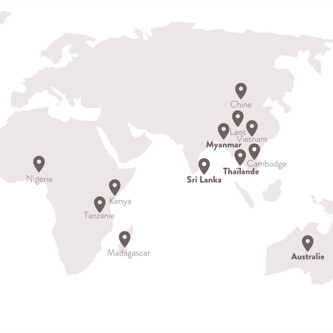 La plus grande zone d’extraction de saphirs et également la plus ancienne se trouve au Sri Lanka. Autrefois appelée Ceylan, cette région donna le nom au Saphir de Ceylan réputé pour son bleu unique. Les saphirs proviennent majoritairement du Sri Lanka, d’Australie, du Myanmar ou de Thaïlande mais on en trouve également au Cambodge, en Chine, au Kenya, au Laos, à Madagascar, au Nigeria, en Tanzanie, aux États-Unis, et au Vietnam.