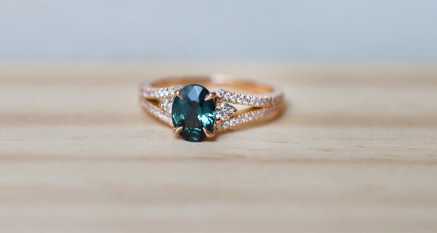 Le saphir est une pierre précieuse qui fait partie de la famille des corindons. Il est composé d’aluminium, de titane et selon ses nuances de couleurs de chrome, de fer, de manganèse, nickel, silicium ou vanadium. Le saphir a la faculté d’exister dans toutes les couleurs de l’arc-en-ciel à l’exception du rouge qui est réservé au rubis. En effet, il existe différentes déclinaisons de couleurs et nuances de saphir comprenant le bleu, le vert, le rose, le violet, le jaune, le rose orangée, le bleu vert.. La dureté du saphir s’élève à 9/10 sur l'échelle de Mohs. Il s'agit de la deuxième pierre la plus dure derrière le diamant et à égalité avec le rubis. Le saphir est une pierre pléochroïque, c’est à dire qu’elle changera de couleur selon l’angle de vue.Le saphir peut présenter un phénomène d'astérisme, connu sous le nom de “saphir étoilé” ou de “saphir oeil de chat” lorsqu’il est taillé en cabochon notamment. Le saphir s’exprime en carat au niveau de son unité de poids.