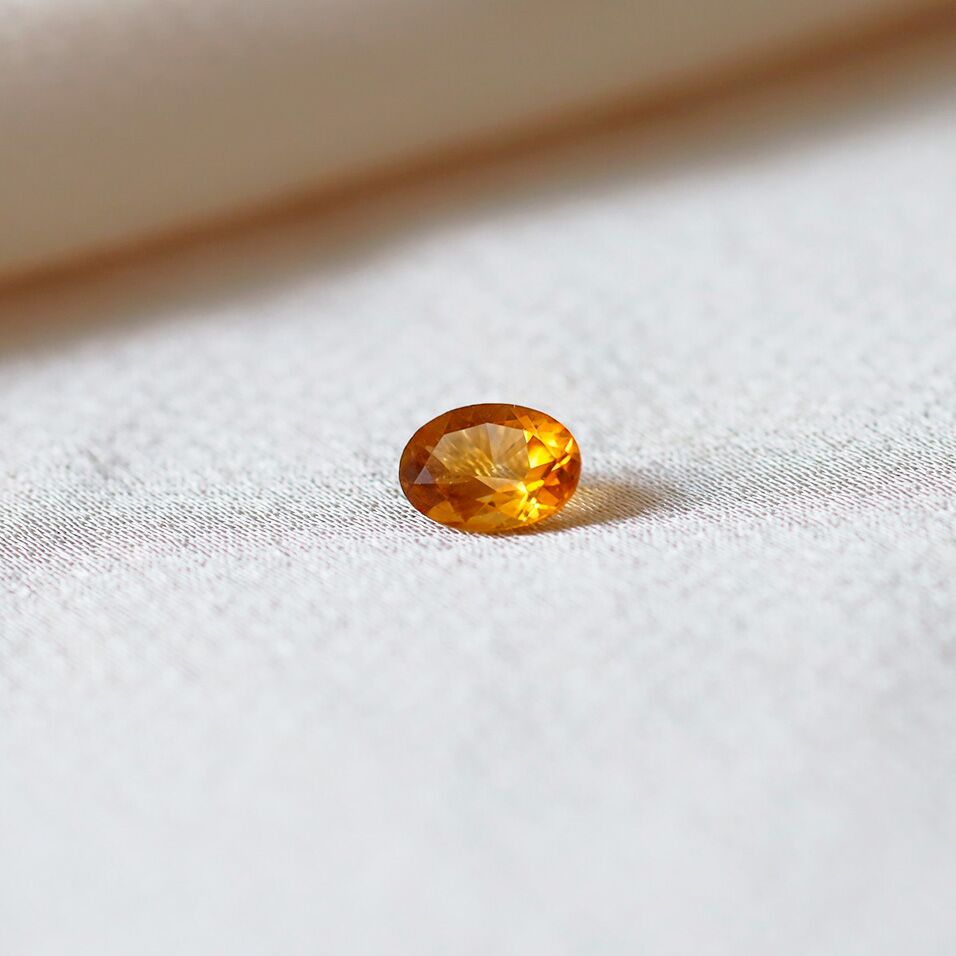 Du jaune pâle à l’oranger, la citrine est une pierre fine qui doit sa couleur à la présence d’oxyde de fer dans sa composition et tire son nom du latin « citrus », qui signifie « citron ». On lui attribue diverses qualités dont : Prospérité, abondance, estime de soi, énergisante.