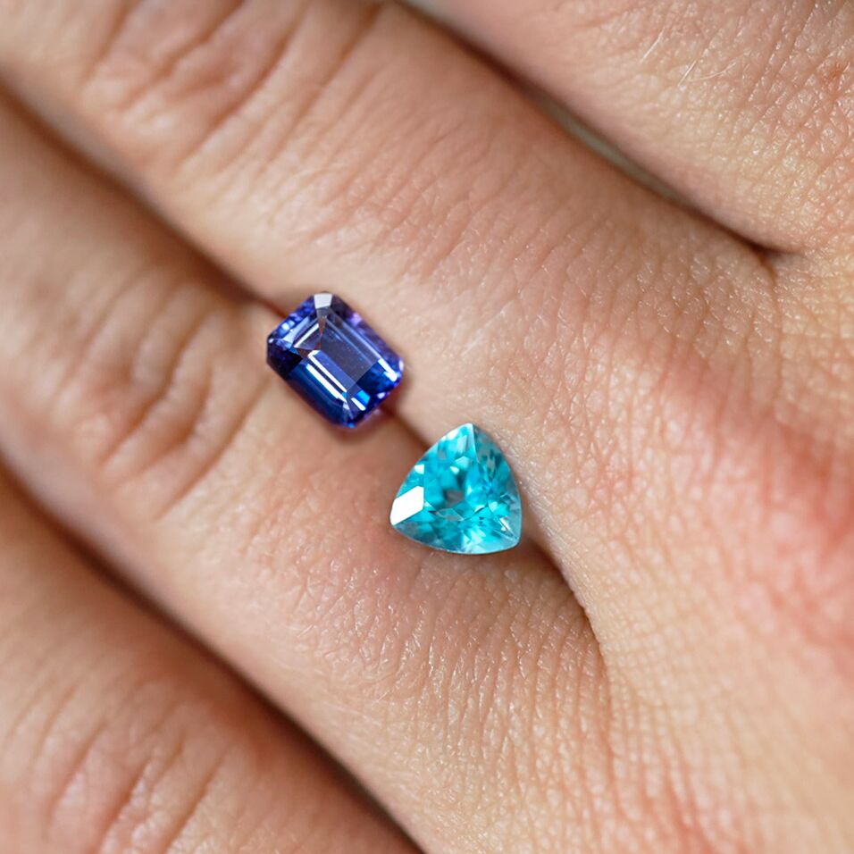La deuxième est la tanzanite. Pierre fine se parant d’un bleu profond aux intenses reflets violets, elle provient d’un unique gisement situé en Tanzanie. Ses vertus sont les suivantes : Créativité, communication, confiance.