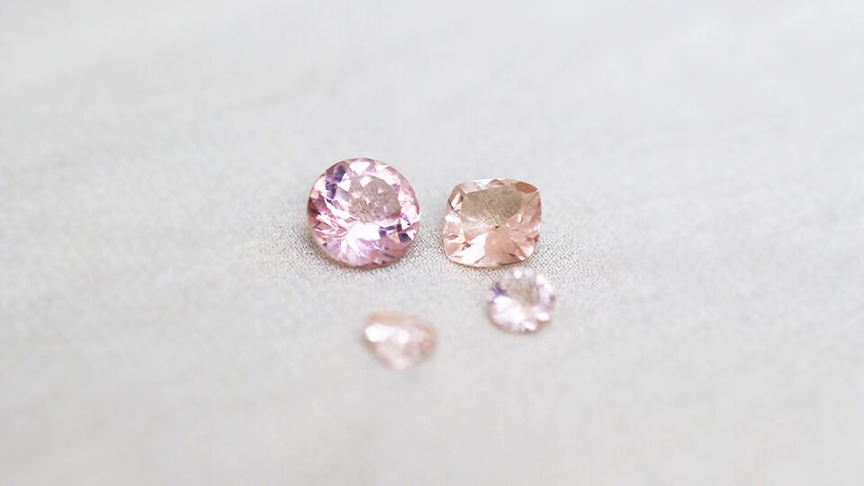 La Morganite se distingue par sa couleur rose et translucide. Elle peut être de différentes nuances : rose fleur de pêcher nuancé de violet, rose saumon ou encore rose pâle. Sa clarté et sa transparence lui confèrent une brillance subtile et délicate.