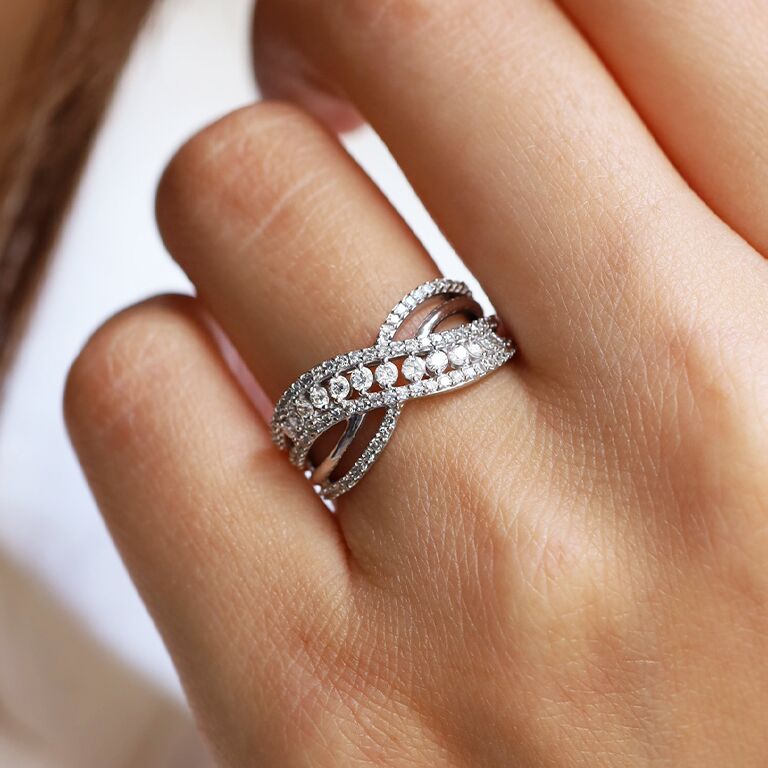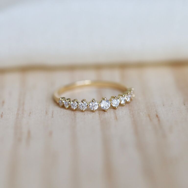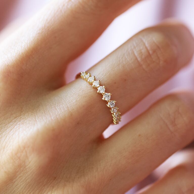 Les alliances en diamants se distinguent par leurs formes : entrelacées, asymétriques, ajustées, ainsi que par leur type de sertissage : griffes, clos, grains, descendu, tension, masse, baguette, rail et barrette, qui sont expliqués plus en détail dans notre précédent article sur Le métier de sertisseur.