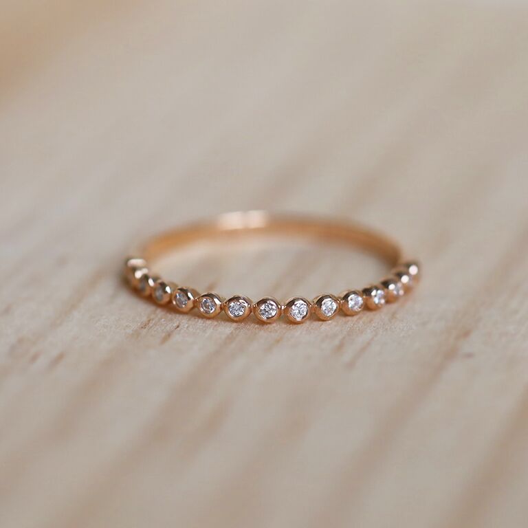 On retrouve également des compositions géométriques plus osées ou des techniques spécifiques comme par exemple le ciselage où l’or est sculpté de façon à lui apporter un scintillement similaire à celui des pierres, et est donc une bonne alternative pour une alliance à faible coût.