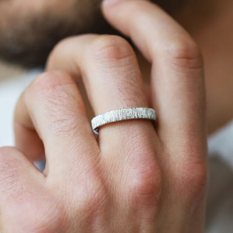 - - La finition givrée est réalisée à l’aide d’une lime, qui donne à la bague un effet “rayé” qui ressemble à du givre. C'est un choix audacieux pour ceux qui souhaitent une bague qui se démarque.