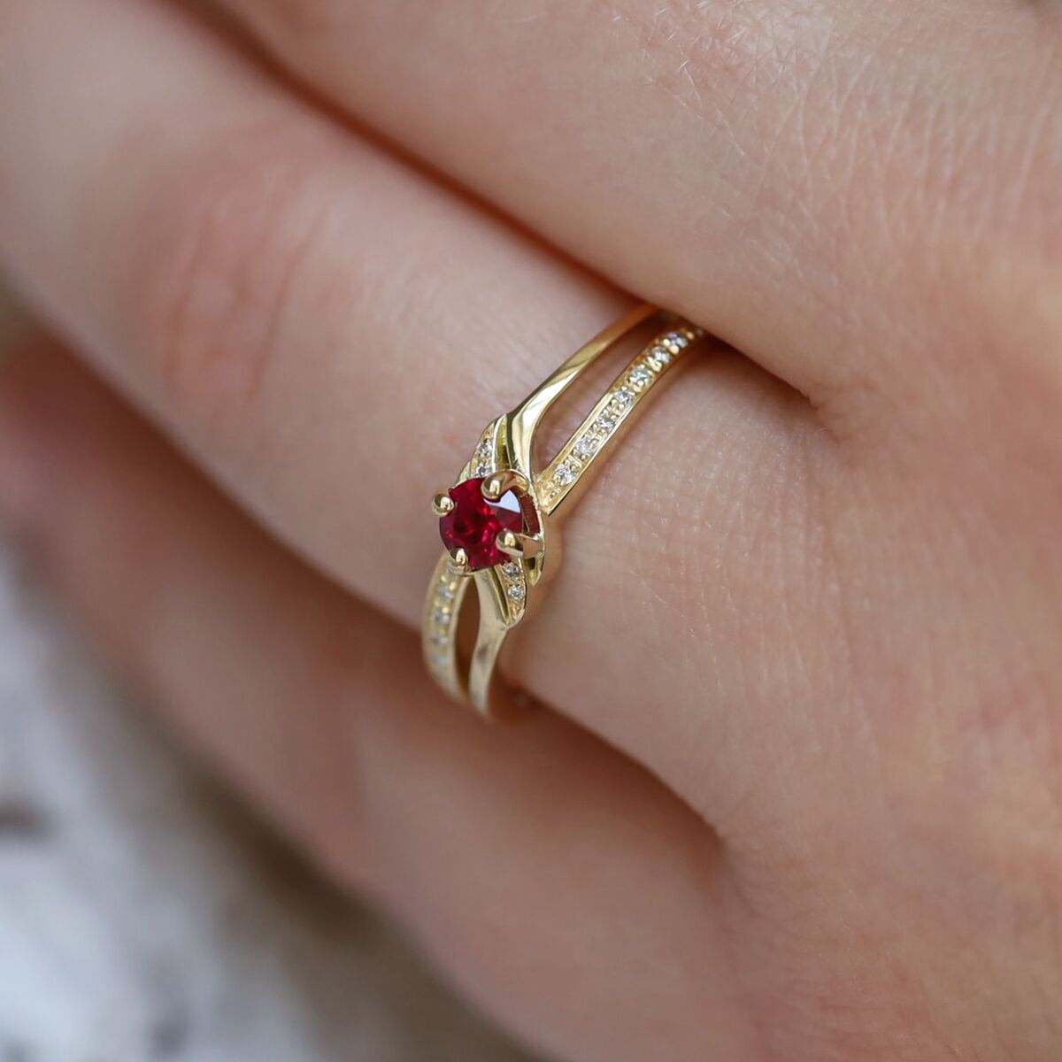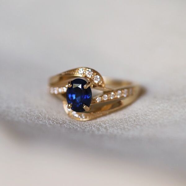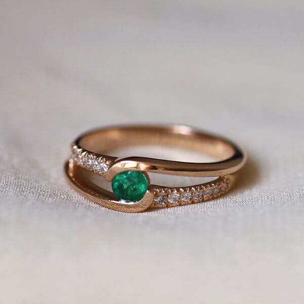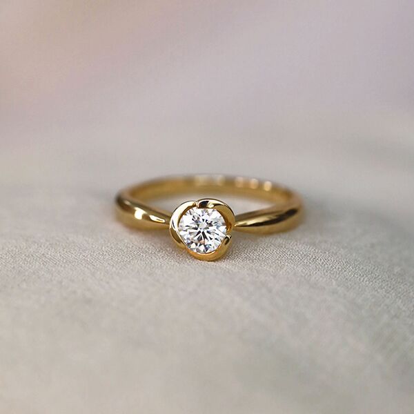 Une bague de fiançailles entrelacée, croisée ou ondulée représente une marque d'originalité, exigeant un travail méticuleux de la part du joaillier pour apporter à la bague un mouvement distinctif tout en mettant en valeur la pierre.