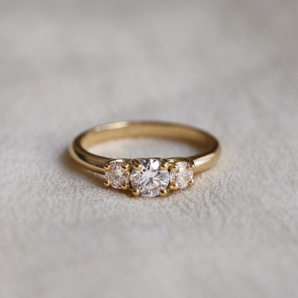 Les bagues de fiançailles trilogies; triplement élégantes ! Le chiffre trois offre une richesse d’interprétations. À la fois originale et distinguée grâce à sa composition de trois pierres précieuses ou fines, la bague trilogie apportera raffinement et élégance. La pierre centrale est souvent plus grande que les deux pierres latérales, créant un effet visuel équilibré et mettant en valeur la pierre principale. Les trois pierres peuvent également être serties dans des griffes séparées ou partagées, ajoutant une esthétique élégante et symbolique à la bague. Chacun peut lui attribuer la signification qu'il désire, que ce soit les trois piliers de l'amour tels que la confiance, la fidélité et le respect, ou encore le passé, le présent et votre futur ensemble.
